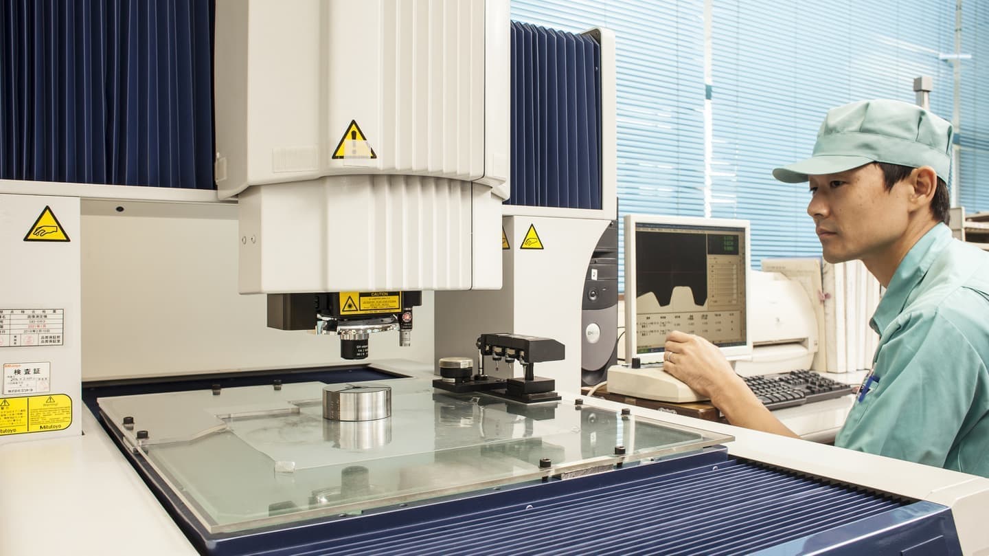 技術開発 / Technology Development 精密部品 ニアネットシェイプ冷間鍛造と切削加工の組み合わせによる高精度部品 鍛造・設計プロセス 競争力の源泉であるニアネットシェイプ冷間鍛造技術 品質評価 高精度部品の技術開発を支える評価技術 金属加工技術開発 5軸マシニングセンターでの高精度加工 金型評価 CNC画像測定器による歯形形状測定